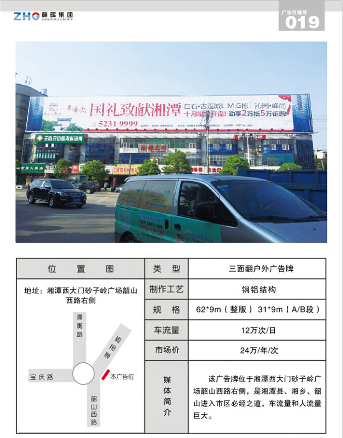 019 湘潭砂子嶺廣場(chǎng)韶山西路右側(cè) 樓頂三面翻廣告牌
